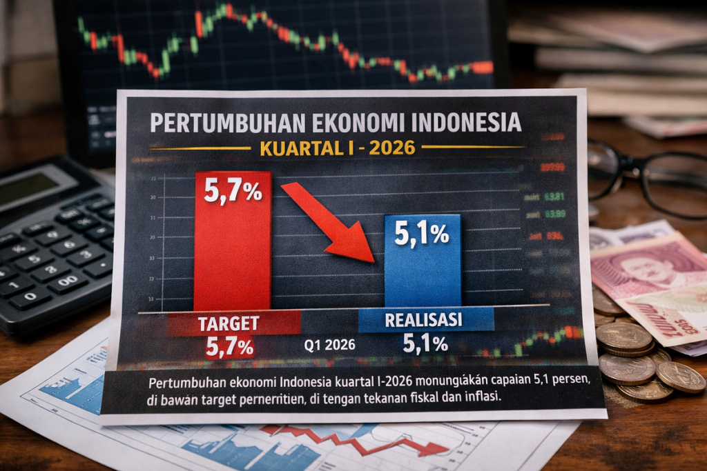 Data Kuartal I-2026 mencatat pertumbuhan ekonomi Indonesia hanya mencapai 5,1 persen, masih tertinggal dari target pemerintah sebesar 5,7 persen.